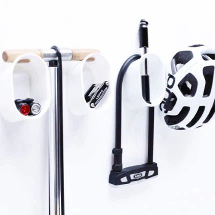 De Loop is een innovatieve, aan de muur gemonteerde opbergoplossing die is ontworpen om al uw fietsuitrusting op één handige plek georganiseerd te houden. Perfect om je helm op te hangen na een lange dag op de weg of op de trail en om een veilige plek te bieden voor je fietsaccessoires.